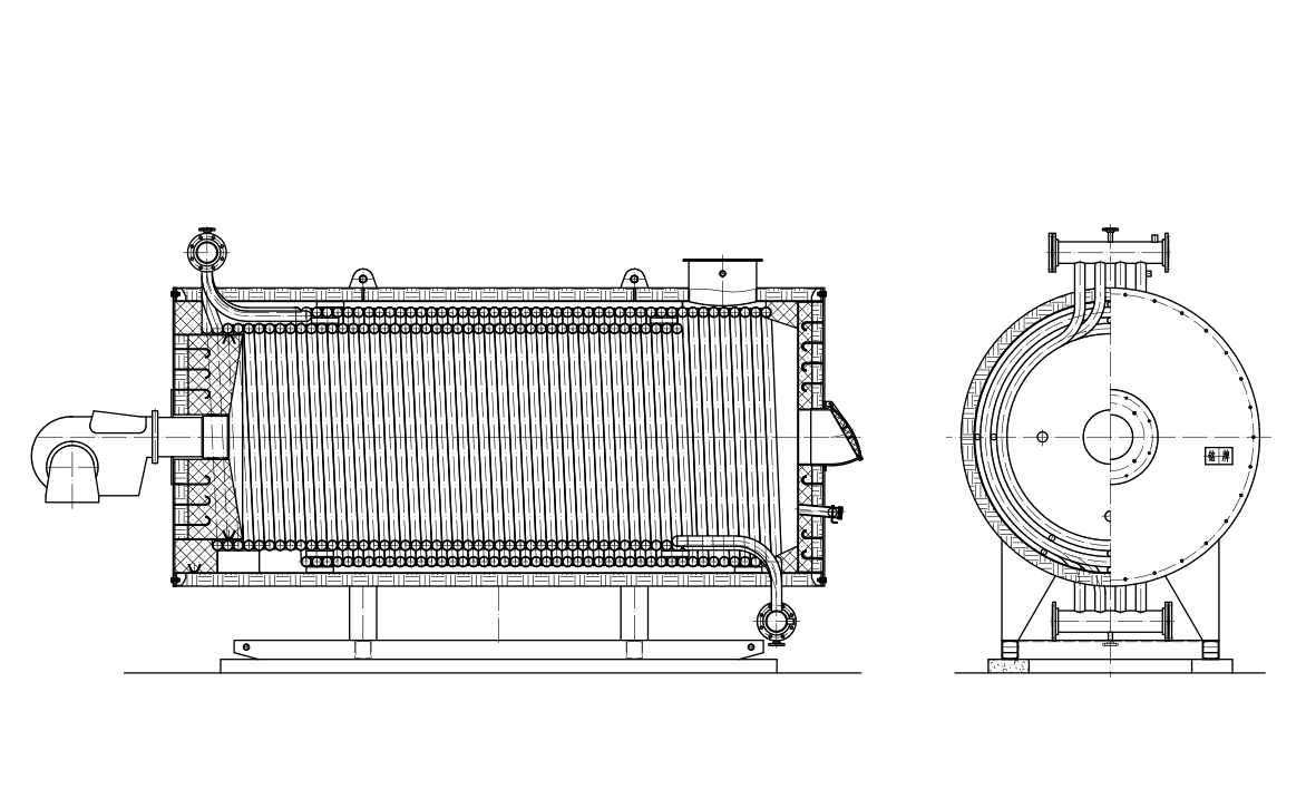6、盤管設(shè)計:爐體內(nèi)、外螺旋盤管采用多頭、小管徑鋼管制成,盤管的熱膨脹性能好、應(yīng)力低、安全可靠。